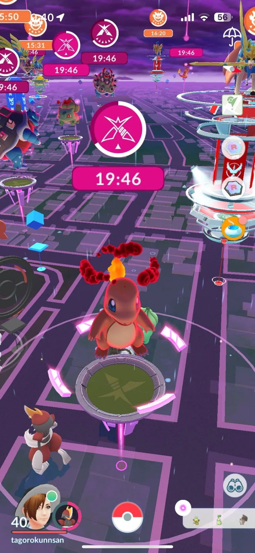 ポケモンGOのアプリを開いてみると、リリー美容室のジムにピンク色の特別なレイドのマークが、