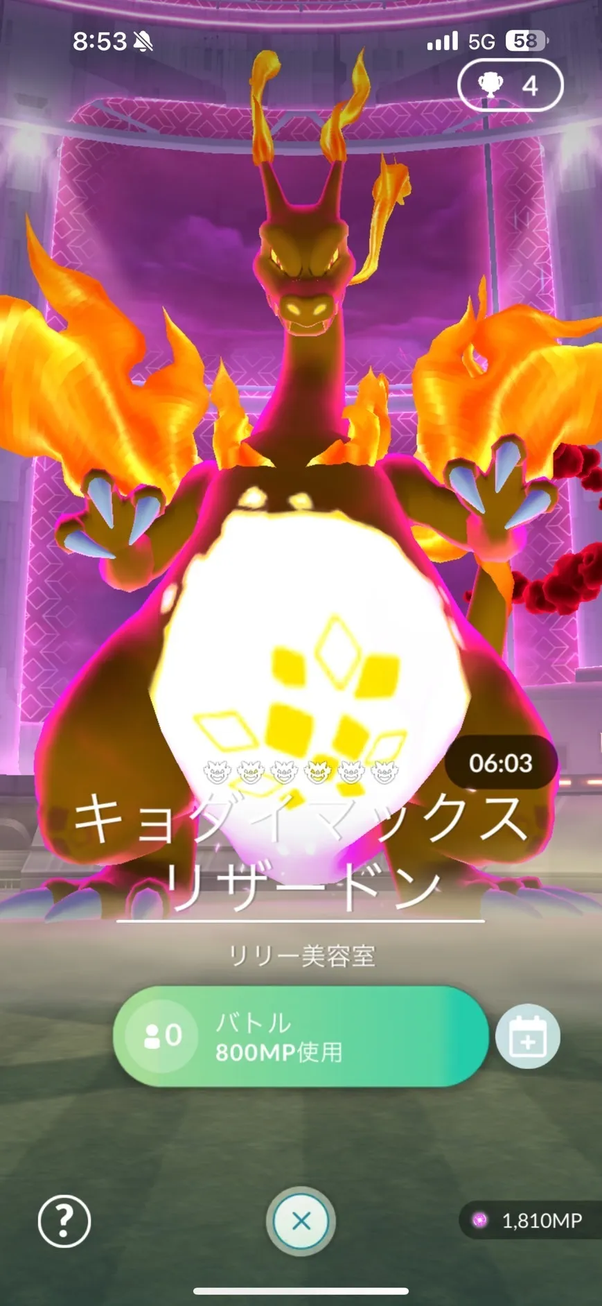 今回のイベントでは、このマックスバトルが「リリー美容室」のジムで期間限定で開催されることになったのです。