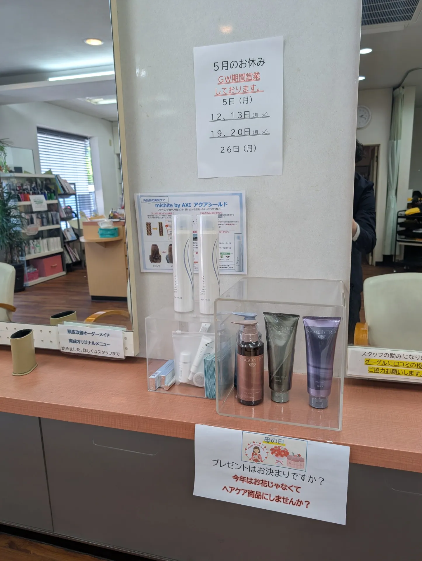 5月のお休みのお知らせです。 2025/04/29 こんにちわ リリー美容室です。 5月のお休みのお知らせです。 5日 12日.13日 19日.20日 26日 お休みします。 GW後半まだ空きがあります。 ご予約お待ちしております。 暑い日の夏用シャンプー等取り扱い始まっております。 気になる方はぜひ 今のイチオシ商品は 睡眠の質を改善する シャンプー&トリートメントです。 ご購入いただいたお客様から 多数のお褒めの お言葉をいただいております。