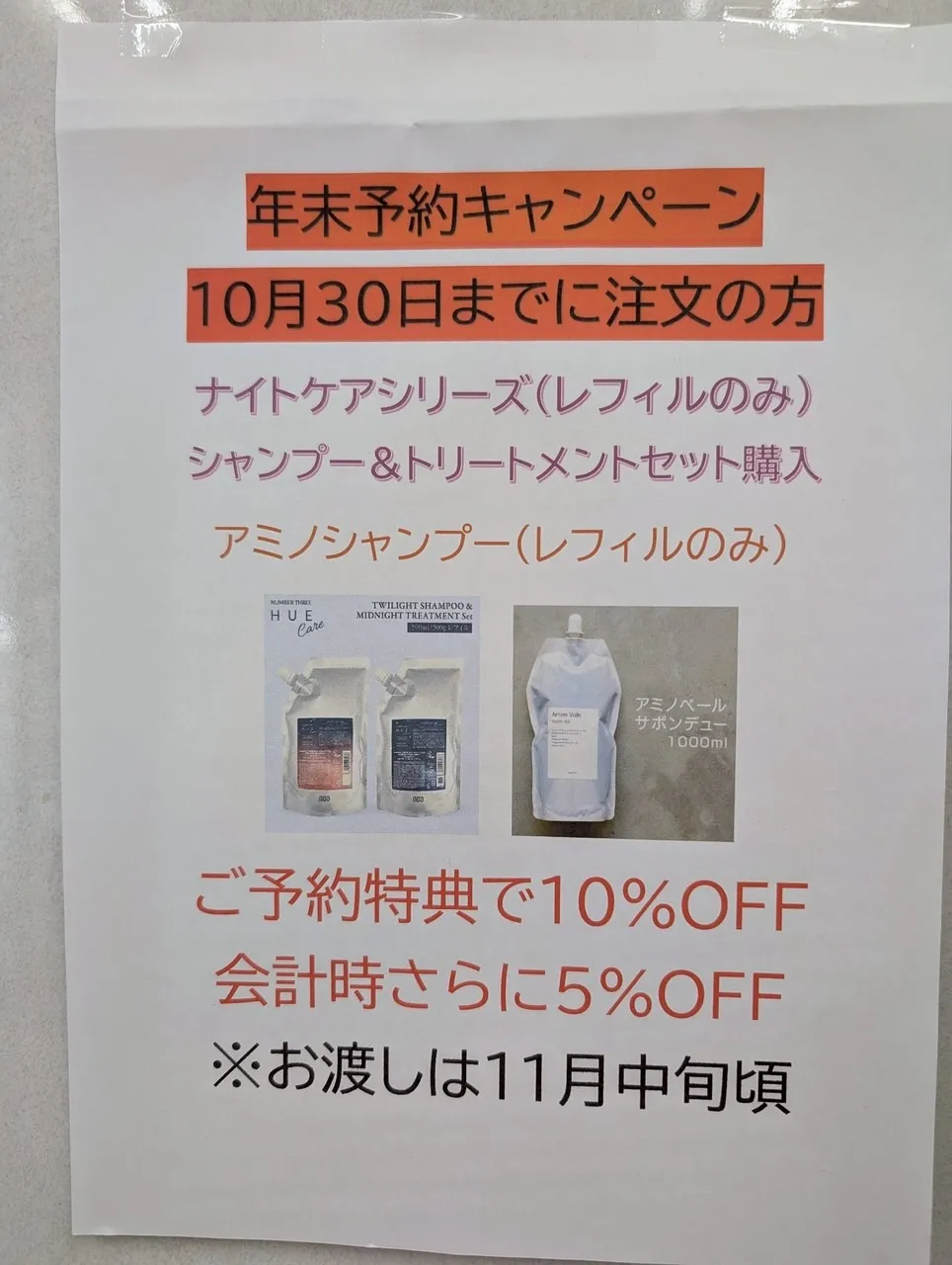 10月のお休みと商品ご予約キャンペーンのお知らせ