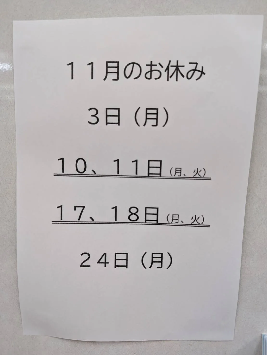 11月のお休みのお知らせ