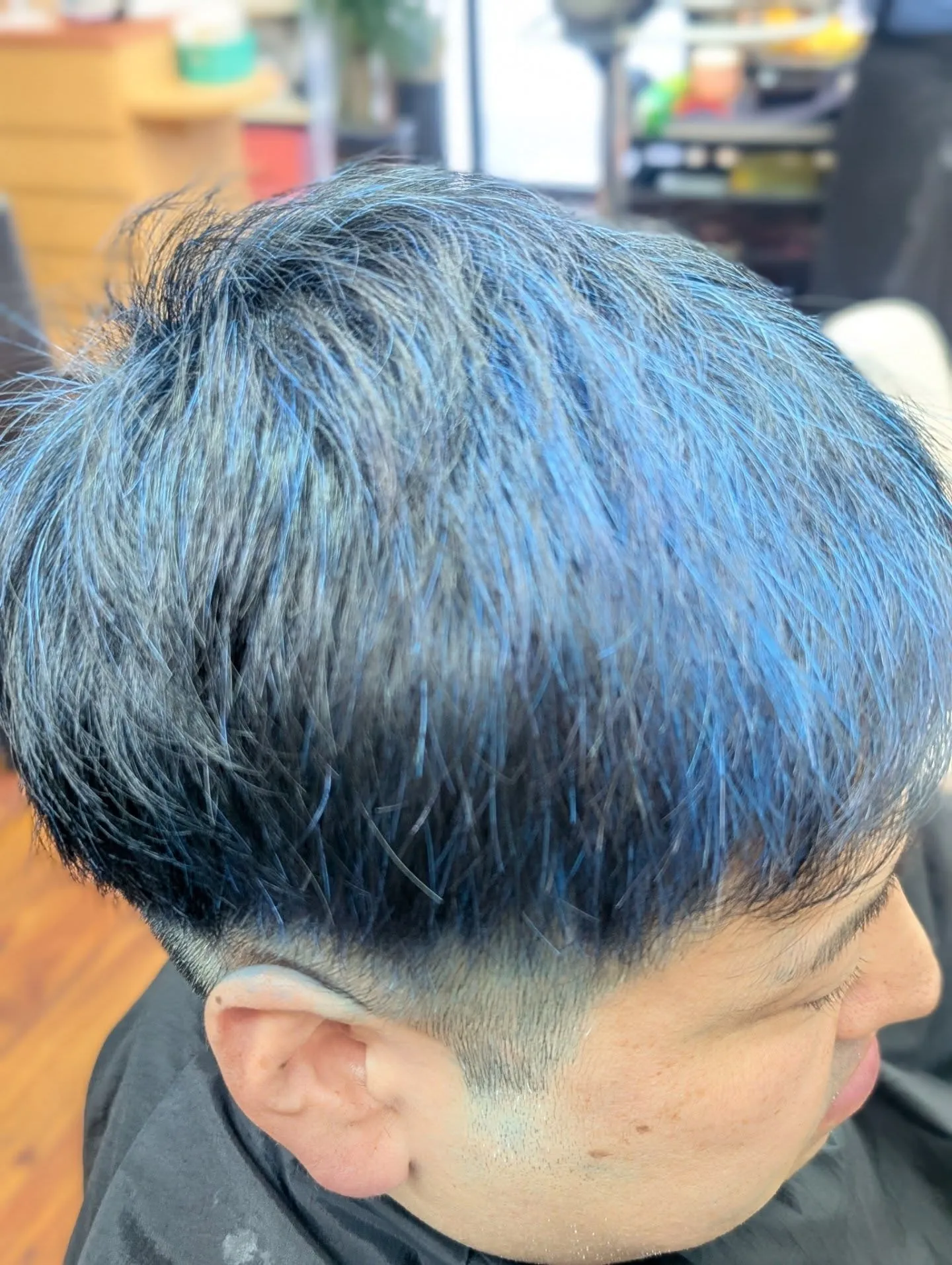 今回ご紹介するこちらのスタイル写真。全体にクールで鮮やかなブルーのハイライトが入っているように見えますが…実はこれ、